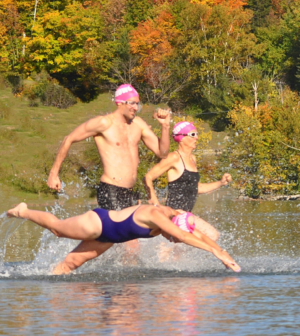 If you're a novice open water swimmer focused on completing a race, or you simply prefer to avoid jostling with other swimmers, line up at the back of the group or to the side. This will give you more room to enter the water and transition into your swimming. If you're focused on your time, place yourself toward the front of the pack and hit the gas at the sound of the start horn. Most swimmers fall somewhere in between.